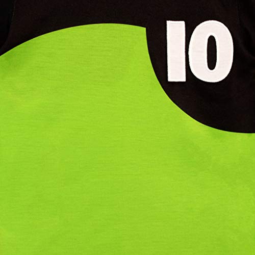 Deze top met korte mouwen lijkt op het kenmerkende T-shirt van Ben 10 en heeft een wit geborduurd nummer ’10’ op de klassieke zwarte en groene achtergrond.
