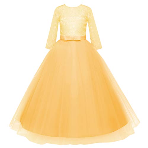 Specification: FYMNSI Meisjesjurk met kanten bloemen, 3/4-mouwen, prinsessenjurk, maxi-jurk, lang, bruidsmeisje, bruiloft, verjaardag…