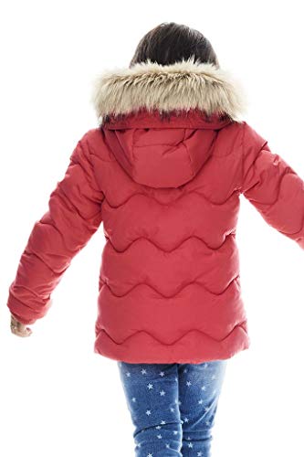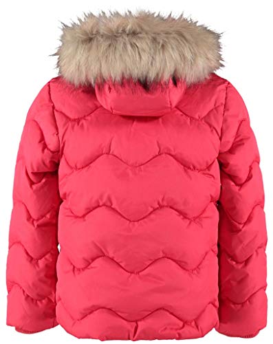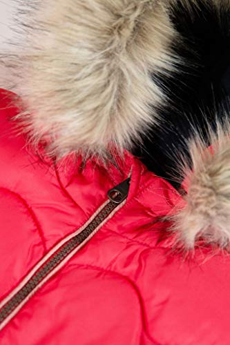 Modieuze gewatteerde jas met bont bezette capuchon en een contrasterende ritssluiting. Ideaal voor koude en regenachtige winterdagen.