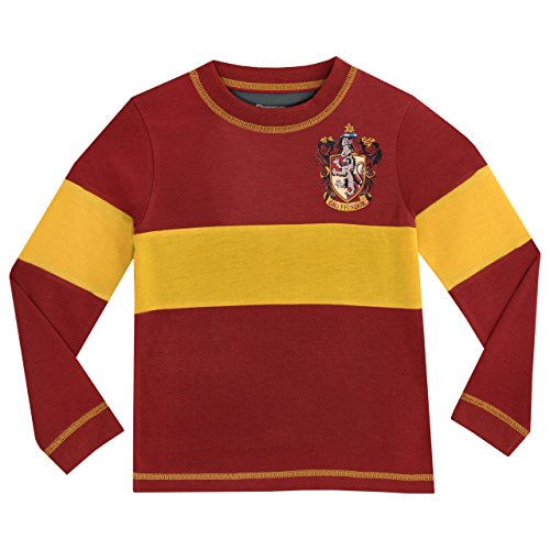 Jongens Harry Potter Pyjama. Of ze nu een slaap feestje met Harry Potter thema houden, of gewoon door het huis willen Potteren, deze pyjama zal zeker een hit zijn bij jouw kleine tovenaar. Een lange pyjama set die komt met een bordeaux en gele top met het Griffoendor logo, een grijze broek met een elastische tailleband en het HP logo met een Snaai.