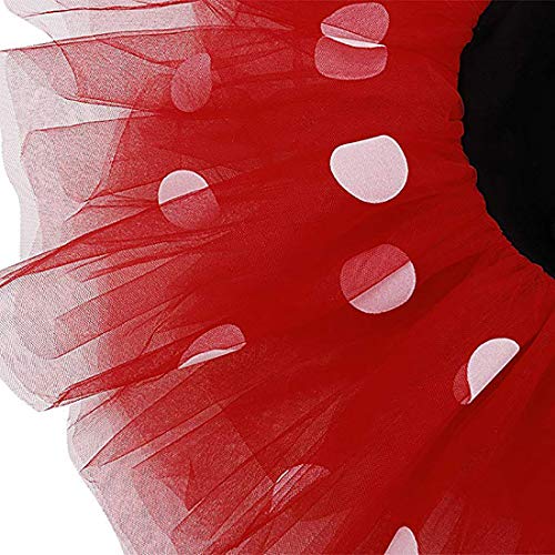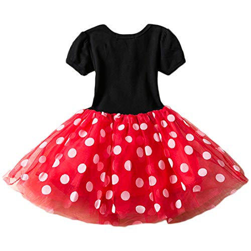 Kenmerken: korte mouw, o-hals, strikelement, tule rok met meerdere lagen, buitenste tule bedrukt met stippen, volants detail, stijlvol en schattig.
