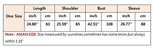 2. One Size : lengte 24.80″, schouder 25.59″, buste 42.51″, mouw 26.77″.