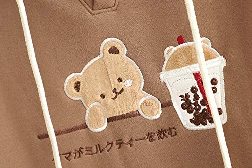 Specification: Kawaii Hoodie Sweatshirt Tiener Meisjes Leuke Beer Melk Thee Lap Borduurwerk Pullover Hooded Tops Nep Tweedelig Plus…