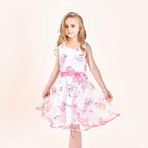 Specification: Meisjes Jurk 3 lagen Roze Bloem Golf Optocht Bruiloft Kinderkleding 4-12 jaren
