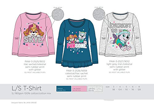 Specification: Paw Patrol T-shirt met lange mouwen voor meisjes, maat 98, 104, 110, 116, 128, glitter, warm, zacht, sky, Everest Kita…