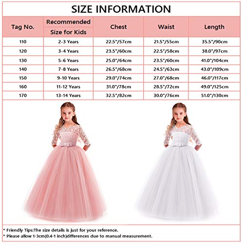 Specification: WOCINL Bloemenmeisjesjurk, kant/tule, 3/4 mouw, vloerlengte, voor prinsesverkiezing, verjaardagsfeest, communie…